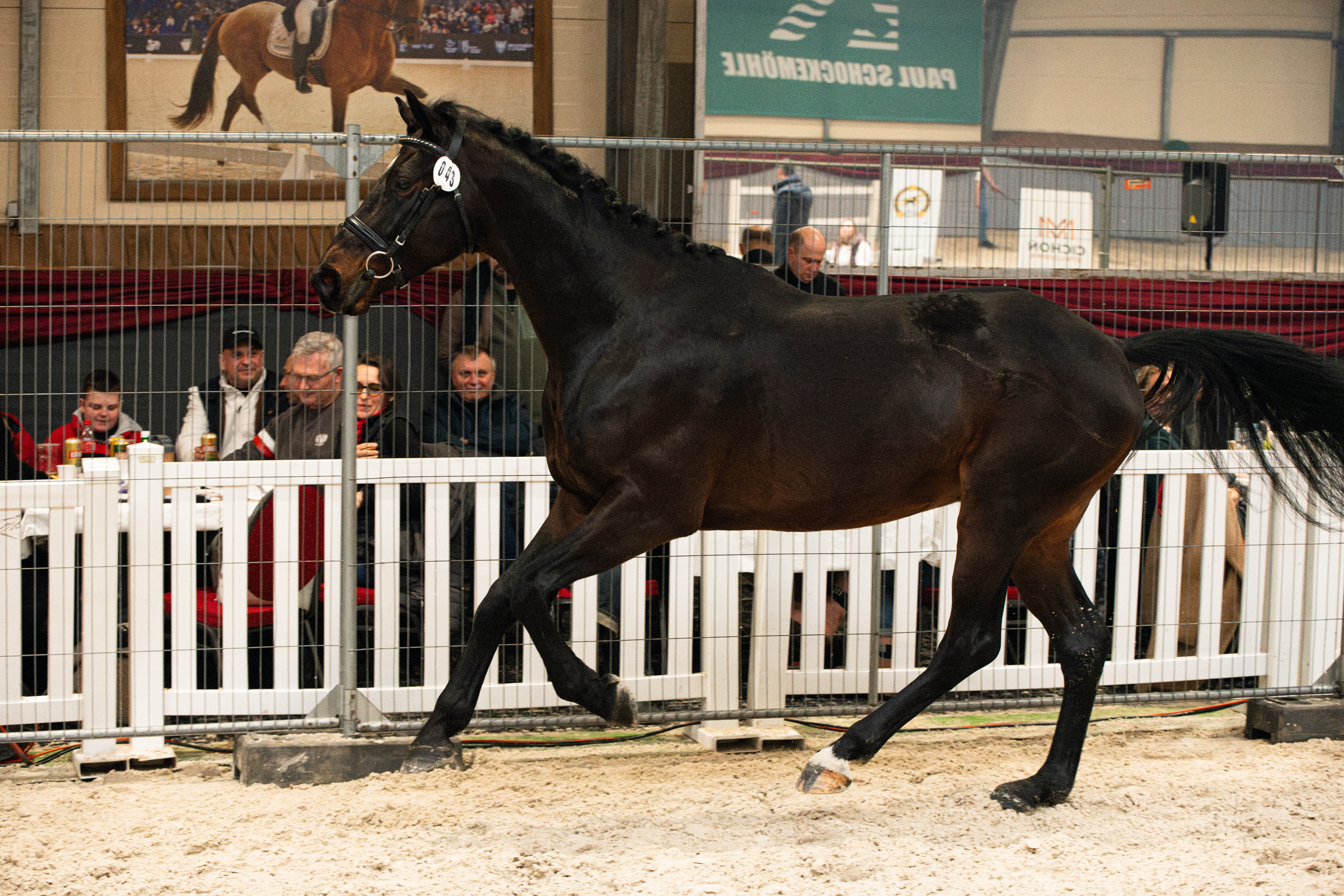 Ogier urodzony w 2021 roku, maści ciemnogniadej, o wymiarach: 162,5-184-21 i bonitacji 78 punktów.